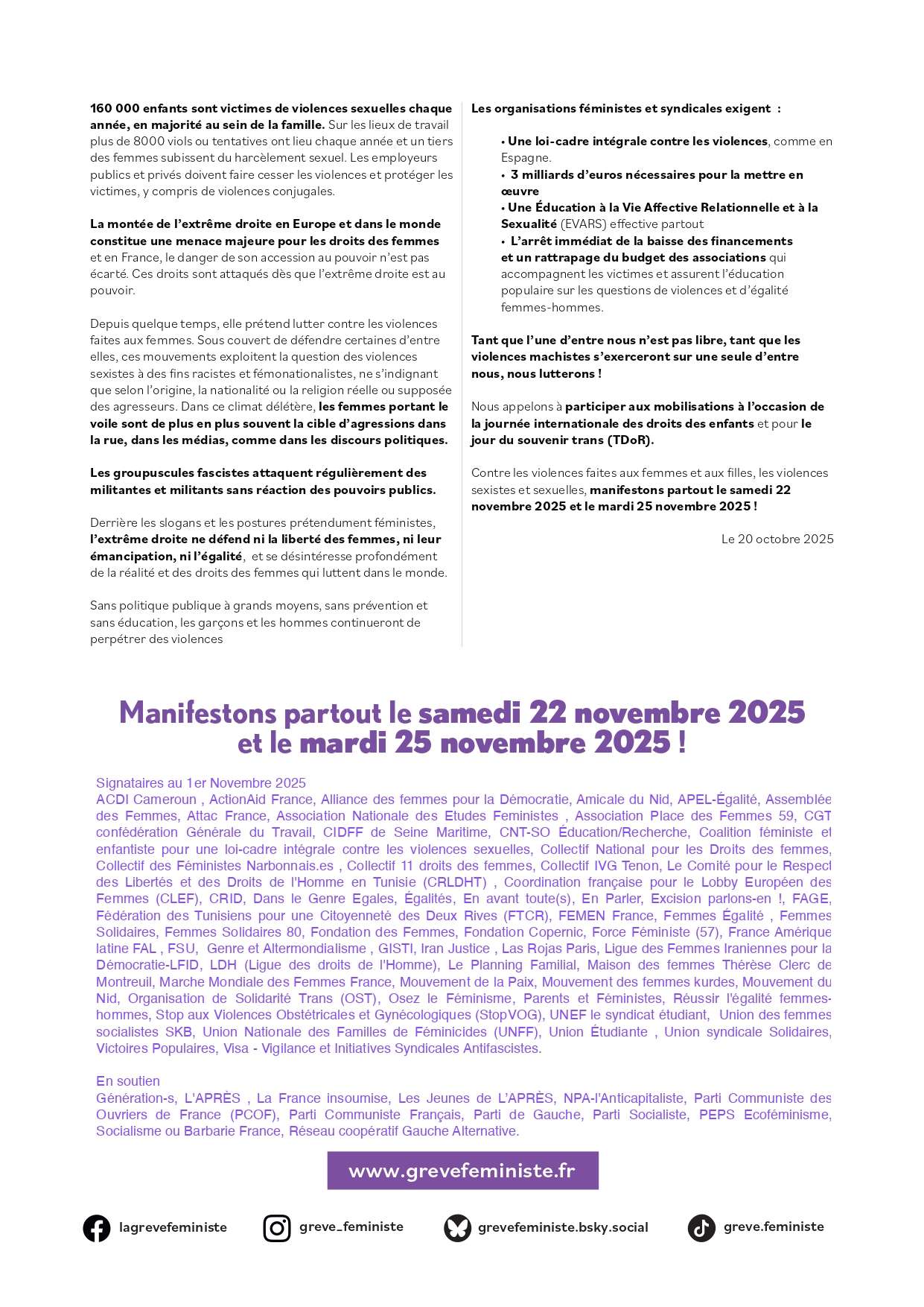 25 novembre – Journée internationale de lutte contre les violences faites aux femmes 2025-11-14T19:56:08+01:0014 novembre 2025|Catégories : À LA UNE| Manifestation Mardi 25 novembre 18h Place du Théâtre Partagez cet article ! FacebookXWhatsAppTelegramEmail Articles similaires Rassemblement Solidarité peuple soudanais Rassemblement Solidarité peuple soudanais 13 novembre 2025 Spectacle : Impeccable à Dijon – Soirée Migrant’Scène Spectacle : Impeccable à Dijon – Soirée Migrant’Scène 12 novembre 2025 SOIRÉE D’INFORMATION SUR STÉRIN ET SON MONDE – 18 NOV – DIJON SOIRÉE D’INFORMATION SUR STÉRIN ET SON MONDE – 18 NOV – DIJON 5 novembre 2025 Budget : rassemblement retraité-es 6 novembre 10h30 devant la préfecture Budget : rassemblement retraité-es 6 novembre 10h30 devant la préfecture 4 novembre 2025 Collectif Paix 21 : pour une paix juste et durable entre Palestiniens et Israéliens Collectif Paix 21 : pour une paix juste et durable entre Palestiniens et Israéliens 2 novembre 2025